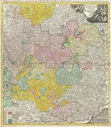 | Keywords: 1720 Homann Map of Franconia, Germany ( Bavaria, Bamberg, Würtzburg, Nuremberg ) - Geographicus - Franconiae-homann-1720.jpg A fine example of J B Homann ™s c 1720 map of Franconia Franken part of Bavaria Germany Centered on Bamberg Würtzburg and Nuremberg extending north as far as Gotha south to Swabia east to Mergentheim and east to Pfreimt Ober Pfalz The map is filled with information including fortified cities villages roads bridges forests battlefields castles and topography Title cartouche in the upper right quadrant features cherubs an enthroned queen with a castle-like crown and an armorial shield Legends in both the lower right and the lower left quadrants Additional title in German outside upper margin Erster und Groster Theil Des Gantzen Hochlobl Franckischen Craisses in welchem die Bisthumer Bamberg Wurtzburg und Aichstett Prepared in Nuremberg by J B Homann and issued in Homann Heirs ™ Maior Atlas Scholasticus circa 1720 undated Size in 19 5 22 5 object history credit line accession number Franconiae-homann-1720 <i>Major Atlas Scholasticus Ex Triginta sex Generalibus et Specialibus Mappis Homannianis </i> c 1730 / Also issued in Homann's <i>Grosser Atlas</i> Geographicus-source PD-old-100 Johann Baptist Homann Old maps of Bavaria 1720 maps Maps in Latin Maps in German Franconia |