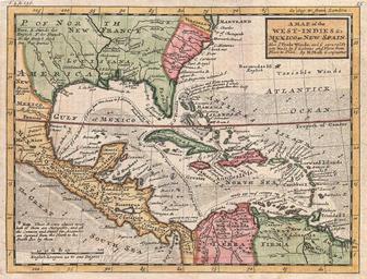 | Keywords: 1732 Herman Moll Map of the West Indies and Caribbean - Geographicus - WestIndies-moll-1732.jpg This is Herman Molls small but significant c 1732 map of the West Indies Moll ™s map covers all of the West Indies eastern Mexico all of Central America the Gulf of Mexico North America as far as the Chesapeake Bay and the northern portion of South America commonly called the Spanish Main Typical of Moll ™s style this map offers a wealth of information including ocean currents and some very interesting commentary Additionally Moll most likely through his acquaintance with pirates William Dampier and Woodes Rogers offers a wealth of information on the traffic of silver bearing Spanish treasure fleets en route from the Mexican port of Veracruz through the islands to Spanish ports in Europe Following the dotted line Moll identifies the Spanish treasure fleet's entrada into the Caribbean via the passage between Granada and Trinidad The fleet then sailed westwards skirting the Spanish Main until they reached Cartagena where they rested and reprovisioned before heading northwards rounding western Cuba and stopping in Havana Using the strong Gulf Stream current - shown here - ships would sail northwards from Havana while being steadily forced to the southeast thus alighting at the deep water port of Veracruz On the return laden with silver from the mines of San Luis Potosi the Spanish fleet took advantage of eastward blowing trade winds which helped to overcome the strong current on the sail to Havana From Havana they would travel northwards via the narrow passage between Florida and the Bahamas before cutting eastward and out to sea at St Augustine It was here in this crucial passage between the English dominated Bahamas and Spanish Florida where the most nefarious pirates and British Privateers lay in wait for their profitable prey Moll further fills this marvelous map with numerous notations that while bearing no direct impact on piracy in the region do offer considerable insight into his political persuasions He identifies for example the river route through Tabasco and Chiapas via which supplies and cannons were transported to the important Pacific port of Acapulco Moll also makes some interesting choices with regard to his mapping of the French territories in North America namely New France and Louisiana He firstly in a nod to La Salle ™s colony of St Louis extends French control of Louisiana westward to the present day Texas-Mexico border of the Rio del Norte or as it is known today the Rio Grande He also includes Florida in the French regions “ a very curious anti-Spanish stance The North American British colonies including Carolina Virginia Georgia and Maryland are also noted This map was issued in a number of different states from 1729 to about 1750 Most commoly it appeared as plate no 55 in Herman Moll and Thomas Bowles' Atlas Minor This particular example was also issued in volume three of Samuel Simpson ™s The Agreeable Historian published in London in the 1740s 1732 undated Size in 11 8 object history credit line accession number WestIndies-moll-1732 Moll H Atlas minor or a new and curious set of sixty-two maps in which are shewn all the empires kingdoms countries states in all the known parts of the earth; with their bounds divisions chief cities towns the whole composed laid down agreeable to modern history By Herman Moll Geographer Thos and John Bowles London 1729 - 1736 ALSO IN Simpson S The Agreeable Historian London 1746 Geographicus-source PD-old-100 1732 maps Maps of the Viceroyalty of New Spain Old maps of the Caribbean Old maps of Central America Old maps of Mexico Maps in English Herman Moll Mexico in the 18th century |