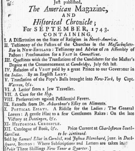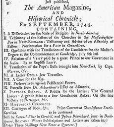 | Keywords: 1743 AmericanMagazine BostonEveningPost Oct31.png en Newspaper item related to The American Magazine and Historical Chronicle Boston Massachusetts Boston Evening Post Boston Evening Post 1743 American Magazine and Historical Chronicle PD-old-100 |