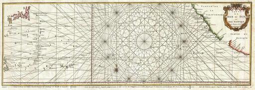 | Keywords: 1751 Anson Map of Baja California and the Pacific, Trade Routes from Acapulco to Manila - Geographicus - MerduSud-anson-1751.jpg This is a rare 1750 nautical chart of the Pacific Ocean by the French map publisher N Bellin Harkens to the great age of Pacific piracy and privateering Based on a similar chart in English prepared three years earlier by Seale Chart depicts the trade routes used by Spanish Galleons from Acapulco Mexico heading towards Manila in the Philippines In particular this chart depicts the travels of the Spanish Nostra Seigniora de Cabadonga and the British Navy Commodore George Anson Anson lead an ill-equipped expedition into the Pacific with the mission to attack Spanish dominions in South America Though he failed in this mission Anson did succeed in capturing the Spanish treasure galleon off Cape Espiritu Santo on June 20 1743 The Spanish galleon was loaded with gold silver and more importantly nautical charts depicting the trade routes used by Spanish Galleons between Mexico and Manila for the previous 200 years This significant discovery allowed the British to disrupt Spain ™s trade in the Pacific and thus economically handicap the Spanish dominance of the New World Following his capture of the Nostra its treasures were paraded through the streets of London in no less than 32 wagons Anson was hailed as a national hero Beautifully details the Pacific islands including Japan the Philippines Guam as well as much of the Mexican and California coast Names numerous important destinations along the California coast including Cabo San Lucas San Diego and Acapulco Rhumb lines throughout Several editions of this map were produced between 1748 and 1752 This example is by far the most uncommon and desirable due to its superior craftsmanship the fact that it is printed on higher quality paper its notable wide margins and Bellin's addition of an elaborate decorative title cartouche in the upper right quadrant If you have been considering adding an example of this map to your collection this is the one you want Drawn by Bellin and published as a supplement to the 1851 French edition of Anson ™s book A Voyage Round The World In the Years MDCCXL I II III IV 1750 undated Size in 34 12 object history credit line accession number MerduSud-anson-1751 Anson G <i>Voyage Autour du Monde Fait Dans Les anees 1740 41 42 43 44</i> 1751 Paris Edition Geographicus-source PD-Art-100 1751 maps Manila galleon Map Old maps of the Pacific Ocean Old nautical charts 1751 Philippines in the 18th century Old maps of California Old maps of Mexico Maps by George Anson Maps in French |