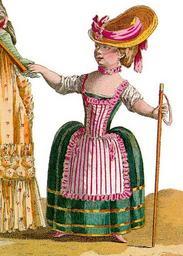| Keywords: 1778-Bourgeois-daughter-fashion.jpg Outfit of the pre-teen daughter of a French bourgeois from Galerie des Modes 1778 Plate 45 detail a green dress with large panniers and a white striped pseudo-apron thing over it By modern standards it seems quite impractical for a child of that age -- and the clothes of an actual aristocrat young girl of the same age might possibly have been even more extreme Compare the adult aristocratic dress at Image 1778-jeune-dame-de-qualite-en-grande-robe jpg This was about a decade before the idea of sparing children most of the indignities of adult fashions took hold compare the attire of Image Marie Antoinette-children-1785-6-Wertmuller jpg in 1785-1786 Image Battledore - Youthful Sports png in 1804 Image Passer-payez-Boilly-ca1803 jpg in ca 1803 Image Philipp Otto Runge 003 jpg in 1805-1806 Image Jean-Baptiste Wicar 001 jpg in 1809 or Image Children-dancing-ca-1820 jpg ca 1820 Also compare en Image Watteau the dance jpg / Image Antoine Watteau 013 jpg or Image Dansande barn målning av Lorens Pasch dy jpg or Image William_Hogarth_047 jpg to see how little things changed from 1718 to 1742 to 1778 Galerie des Modes 1778 18th century artists possibly the same who did File 1778-jeune-dame-de-qualite-en-grande-robe jpg PD-old-100 Galerie des modes Fashion in art 1770s dresses Multicolor dresses Women smiling in art Girls smiling while standing Standing girls in art People with staffs in art Female headgear in art Details of paintings Girls' clothing Aprons in art Fashion in 1778 |