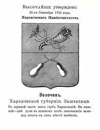 | Keywords: Хар губ Золочев 1781 из Винклера.jpg Official Russian Empire coat of arms Zolochev Ге б Российской Импе ии заштатного го ода Золочев Ха ьковской губе нии с официальным описанием в Ге бовнике Винкле а П П фон-Винкле Ге бы го одов губе ний областей и посадов Российской Импе ии внесенные в Полное Соб ание законов с 1649 по 1900 год Дозволено цензу ою С -Пете бу г 20 Июля 1899 года Издание книгото говца Ив Ив Иванова С -Пете бу г Типог афия И Комелова П яжка д 3 1899 \ Scanned by Vizu 1781 \ 1899 published П П фон Винкле \ Pavel von Vinkler PD-old PD-RusEmpire PD-RU-exempt coats of arms Gerbovnik Vinklera - City CoAs Зoloчeв Coats of arms of Zolochev Coats of arms of cities in Kharkov Governorate |