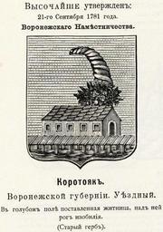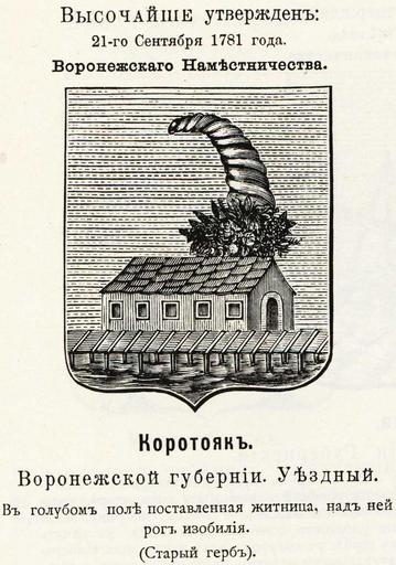 Keywords: Короткояк 1781 из Винклера.jpg Official Russian Empire coat of arms Korotkoyak Ге б Российской Импе ии уездного го ода Ко откояк Во онежской губе нии с официальным описанием в Ге бовнике Винкле а П П фон-Винкле Ге бы го одов губе ний областей и посадов Российской Импе ии внесенные в Полное Соб ание законов с 1649 по 1900 год Дозволено цензу ою С -Пете бу г 20 Июля 1899 года Издание книгото говца Ив Ив Иванова С -Пете бу г Типог афия И Комелова П яжка д 3 1899 \ Scanned 1781 \ 1899 published П П фон Винкле \ Pavel von Vinkler PD-old PD-RusEmpire PD-RU-exempt coats of arms Gerbovnik Vinklera - City CoAs Coats of arms of Voronezh Governorate Russian canting arms Houses in heraldry |