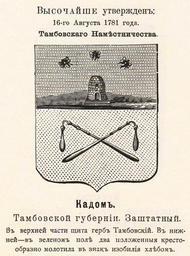 | Keywords: Кадом 1781 из Винклера.jpg  Official Russian Empire Kadom coat of arms Ге б заштатного го ода Кадом Тамбовской губе нии Российской Импе ии с официальным описанием в Ге бовнике Павла Пет овича Винкле а П П фон-Винкле Ге бы го одов губе ний областей и посадов Российской Импе ии внесенные в Полное Соб ание законов с 1649 по 1900 год Дозволено цензу ою С -Пете бу г 20 Июля 1899 года Издание книгото говца Ив Ив Иванова С -Пете бу г Типог афия И  Комелова П яжка д 3 1899 / Scanned 1781 / 1899 published П П фон Винкле / Pavel von Vinkler PD-old PD-RusEmpire PD-RU-exempt coats of arms Gerbovnik Vinklera - City CoAs Coats of arms of Tambov Governorate Agricultural tools in heraldry Bees in heraldry Beehives in heraldry |