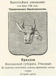 Keywords: Прилуки 1782 из Винклера.jpg Official Russian Empire Priluki coat of arms Ге б уездного го ода П илуки Полтавской губе нии в 1782 - Че ниговского наместничества Российской Импе ии с официальным описанием в Ге бовнике Павла Пет овича Винкле а П П фон-Винкле Ге бы го одов губе ний областей и посадов Российской Импе ии внесенные в Полное Соб ание законов с 1649 по 1900 год Дозволено цензу ою С -Пете бу г 20 Июля 1899 года Издание книгото говца Ив Ив Иванова С -Пете бу г Типог афия И Комелова П яжка д 3 1899 / Scanned 1782 / 1899 published П П фон Винкле / Pavel von Vinkler PD-old PD-RusEmpire PD-RU-exempt coats of arms Gerbovnik Vinklera - City CoAs Coats of arms of Poltava Governorate Buffalo in heraldry Sabres in heraldry |