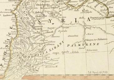 | Keywords: 1783 Damascus map detail by JBB dAnville Asiæ quæ vulgo minor dicitur et Syriæ tabula geographica BostonPublicLibrary 14676.png Detail of Asiæ quæ vulgo minor dicitur et Syriæ tabula geographica quantum per subsidia licuit elaborata opere si quod aliud in antiquâ geographiâ arduo quam tabulam clariss Dom Comes de Caylus in ære incidi curavit Author Jean Baptiste Bourguignon d'Anville Publisher Weigelio-Schneideriana Date 1783 Location Syria Turkey Dimension 48 x 61 cm Scale ca 1 2 500 000 Call Number G7430 1783 A58x Boston Public Library USA / http //maps bpl org/id/14676 1783 Creator Jean Baptiste Bourguignon d'Anville PD-old-100 Maps of Damascus Syria in the 18th century |