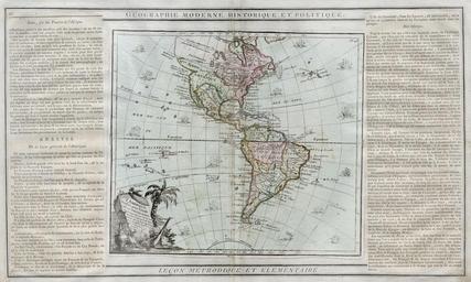 | Keywords: 1786 Brion de la Tour Map of South and North America - Geographicus - Amerique-brion-1786.jpg A hard to find 1786 map of the North America and South America by French cartographer Louis Brion de la Tour Depicts the whole of North and South America with several interesting cartographic features The American northwest is largely ill defined though highly suggestive of the French conception of a water route through North America Notations indicate a great Sea of the West but the exact location of this is left undefined The region of the Apache American Indian tribe is noted and the Pacific Northwest is labeled Albion Texas is labled Nouvelle Mexique and shows as distinct from Mexico or Nouvelle Espagne In South America Bogata is located in Terre Ferme and some early colonial cities such as Cuzco Lima and La Paz are noted Attractive decorative title cartouche in lower left quadrant Sixteen sailing ships decorate the oceans Descriptive text to either side of the map proper 1786 dated Size in 19 11 object history credit line accession number Amerique-brion-1786 Geographicus-source PD-Art-100 Old maps of the Americas 1786 maps Louis Brion de La Tour Maps in French |