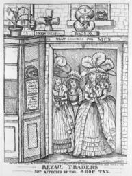 | Keywords: 1787-prostitutes-caricature.jpg 1787 caricature of prostitutes giving an idea of their clothing and attire When in public they were more often decked out in faded finery worn in an inappropriate context rather than in clothing that would seem particularly revealing or sexy in 21st-century eyes Note the fire insurance company badge mounted on the building; at that time each fire insurance company had an associated firefighting unit which would usually only put out fires at establishments of paying customers ---- Bibliographic information found on LoC site TITLE Retail traders not affected by the shop tax CALL NUMBER PC 3 - 1787--Retail traders A size P P REPRODUCTION NUMBER LC-USZ62-132976 b w film copy neg No known restrictions on publication SUMMARY Print shows three women standing inside the entrance to an establishment labeled Neat lodgings for men over which is a bust of a Turk's Head on a pedestal labeled Bagnio ; a notice in the window states For the benefit of the Dowager Eve this every evening by permission of their Worships such things are MEDIUM 1 print etching ; 27 4 x 20 cm plate CREATED/PUBLISHED London Pub'd for the proprietor by E Macklew No 9 Haymarket W Moore No 48 New Bond Street 1787 March 2nd NOTES Title from item Watermark on center of paper DLC Attributed to William Dent Forms part of British Cartoon Collection Library of Congress SUBJECTS Prostitution--England--1780-1790 Taxes--England--1780-1790 Brothels--England--1780-1790 FORMAT Cartoons Commentary British 1780-1790 Etchings British 1780-1790 REPOSITORY Library of Congress Prints and Photographs Division Washington D C 20540 USA DIGITAL ID b w film copy neg cph 3c32976 http //hdl loc gov/loc pnp/cph 3c32976 CARD 2003674093 Edited from image http //memory loc gov/master/pnp/cph/3c30000/3c32000/3c32900/3c32976u tif on the Library of Congress website http //hdl loc gov/loc pnp/cph 3c32976 1787-03-02 Attributed to William Dent PD-old-100 1780s fashion 1787 cartoons 18th-century caricatures Feathered headdresses in art female Line art Panniers clothing in art Prostitutes in art Prostitution in the United Kingdom |