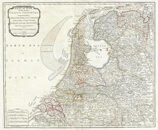 | Keywords: 1794 Laurie and Whittle Map of Holland or The Netherlands - Geographicus - Holland-lauriewhittle-1794.jpg An extraordinary 1794 map of Holland or the Netherlands by Laurie and Whittle Covers from Zeeland eastward as far as the Circle of Westphalia north to the mouth of the Ems River and south as far as the Bishopric of Liege Includes the modern day nation of the Netherlands as well as adjacent parts of Germany and Belgium Renders the entire region in extraordinary detail offering both topographical and political information Undersea shoals canals swamps and lakes are beautiful rendered in fine engraving Color coded according to region A key and title cartouche appear in the upper left quadrant Published by Laurie Whittle for Kitchin's 1794 General Atlas 1794 dated Size in 23 19 object history credit line accession number Holland-lauriewhittle-1794 Kitchin Thomas <i>Kitchin's General Atlas describing the Whole Universe being a complete collection of the most approved maps extant; corrected with the greatest care and augmented from the last edition of D'Anville and Robert with many improvements by other eminent geographers engraved on Sixty-Two plates comprising Thirty Seven maps </i> Laurie Whittle London 1797 Geographicus-source PD-Art-100 Old maps of the Netherlands 1794 maps English language maps of Europe |