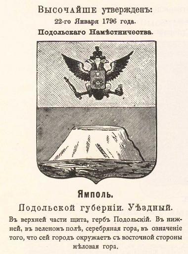 | Keywords: Ямполь 1796 из Винклера.jpg  Official Russian Empire coat of arm Ге б Российской Импе ии уездного го ода Ямполь Подольской губе нии с официальным описанием в Ге бовнике Винкле а П П фон-Винкле Ге бы го одов губе ний областей и посадов Российской Импе ии внесенные в Полное Соб ание законов с 1649 по 1900 год Дозволено цензу ою С -Пете бу г 20 Июля 1899 года Издание книгото говца Ив Ив Иванова С -Пете бу г Типог афия И  Комелова П яжка д 3 1899 \ Scanned by Vizu 1796 \ 1899 published П П фон Винкле \ Pavel von Vinkler PD-old PD-RusEmpire PD-RU-exempt coats of arms Gerbovnik Vinklera - City CoAs Coats of arms of cities in Podolia Governorate Eagles in heraldry Hills in heraldry |