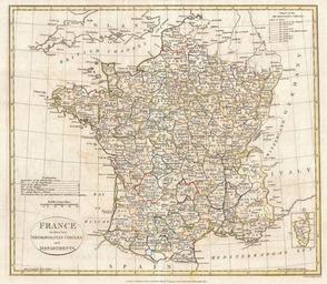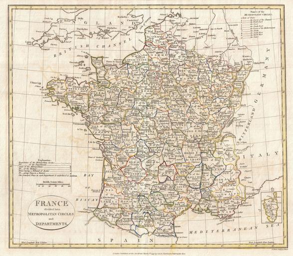 | Keywords: 1799 Clement Cruttwell Map of France in Departments - Geographicus - FranceDepartments-cruttwell-1799.jpg A fine 1799 map of France divided into Metropolitan Circles and Departments by the English map publisher Clement Cruttwell The French Department system was established on March 4th 1790 by the National Constituent Assembly to replace the provinces with what the Assembly deemed a more rational structure They were designed to deliberately break up France's historical regions in an attempt to erase cultural differences and build a more homogeneous nation Initially there were 83 departments but by 1800 that number increased to rougly 130 Many of the departments that were created in 1790 remain the administrative distircts to this day Lists the Metropolitan Circles in the upper left quadrant These include the Circle of Paris Circle of the North East the East South East Coasts of the Mediterranean South South West North West and Centre An legend of symbols appears in the lower left quadrant Includes rivers political boundaries important cities ports and gulfs Mountains and other topographical features shown by profile Outline color and fine copper plate engraving in the minimalist English style prevalent in the late 18th and early 19th centuries Drawn by Clement Cruttwell and published in the 1799 Atlas to Cruttwell's Gazetteer 1799 dated Size in 16 14 object history credit line accession number FranceDepartments-cruttwell-1799 Cruttwell C <i>Atlas to Cruttwell's Gazetteer</i> 1799 Geographicus-source PD-Art-100 Old maps of the history of France 1799 maps Maps by Clement Cruttwell English language maps of Europe |
