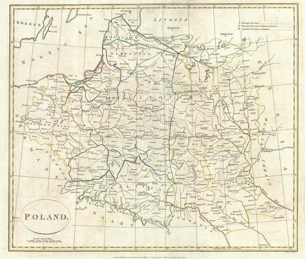 Keywords: 1799 Clement Cruttwell Map of Poland and Lithuania - Geographicus - Poland-cruttwell-1799.jpg A fine 1799 map of Poland by the English mapmaker Clement Cruttwell Shows the partitioning of the Polish-Lithuanian Commonwealth in 1765-1795 between Prussia Austria and Russia The map covers the area from Poznan in the west to just west of Kiev in the east and from as far south as Moldavan border Makes note in the upper-right quadrant of the three partitioned areas Russia Prussia and Austria Russia claimed the bulk of what once comprised the Grand Duchy of Lithuania from Livonia south to Moldava Prussia took hold of the area east of Warsaw while Austria held claim to the area as far south as Galicia Detailed borders also show the regions of Courland Samoglita and the Polish Ukraine Outline color and fine copper plate engraving in the minimalist English style prevalent in the late 18th and early 19th centuries Mountains and topographical other detail shown by profile Also makes note of rivers and some offshore shoals Drawn by Clement Cruttwell and published in the 1799 Atlas to Cruttwell's Gazetteer 1799 dated Size in 16 13 5 object history credit line accession number Poland-cruttwell-1799 Cruttwell C <i>Atlas to Cruttwell's Gazetteer</i> 1799 Geographicus-source PD-Art-100 Maps by Clement Cruttwell 1799 maps Old maps of Poland Old maps of Lithuania under Russian and German empires |