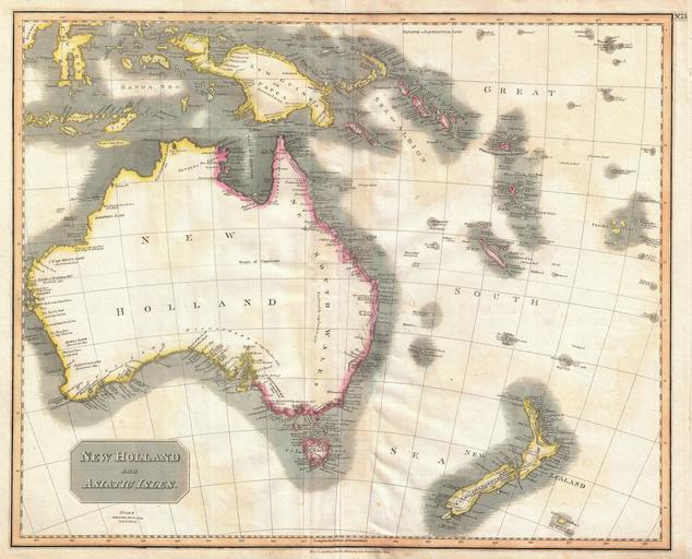 | Keywords: 1814 Thomson Map of Australia, New Zealand and New Guinea - Geographicus - Australia-thomson-1814.jpg This a wonderful example of John Thompson ™s 1814 Map of Australia New Zealand New Guinea and parts of Polynesia Extends from Western Australia and the Celebes eastward as far as New Caledonia and the Fiji Islands Extends southward as far as New Zealand and Chatham Island Notes the discoveries of important explorers in the region including Captain Grant Captain Bandin Captain Cook Captain Flinders Captain Bass Captain Dampier and others Make notes on terrain soil water sources and safe ports This map was prepared around the same time that Captain Flinders published the first accurate map of the Australian coast Slightly crisper impression in the south eastern portions of Australia suggests several updates based upon Flinders ™ work Prepared in 1814 by John Thomson for publication by Baldwin Cradock as plate no 73 in the 1817 edition of Thomson ™s New General Atlas 1814 dated Size in 25 20 object history credit line accession number Australia-thomson-1814 Thomson John <i>A new general atlas consisting of a series of geographical designs on various projections exhibiting the form and component parts of the globe; and a collection of maps and charts delineating the natural and political divisions of the empires kingdoms and states in the World Constructed from the best systematic works and the most authentic voyages and travels With a memoir of the progress of geography a summary of physical geography and a consulting index to facilitate the finding out of places Edinburgh Printed by George Ramsay and Company for John Thomson and Company Edinburgh; Baldwin Cradock and Joy London; and John Cumming Dublin 1817 </i> 1817 edition Geographicus-source PD-old-100 Maps by John Thomson 1814 maps Old maps of Australia Old maps of New Zealand Old maps of New Guinea Old maps showing history of Oceania Maps in English |