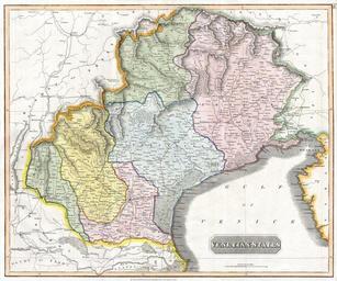 | Keywords: 1814 Thomson Map of the Venetian States (Venice), Italy - Geographicus - VenetianStates-t-1814.jpg This fascinating hand colored 1814 map by Edinburgh cartographer John Thomson depicts the Venetian States of Italy This includes the area immediately surrounding the floating city of Venice Trevigiano Friuli Padova and Vicentino Extends to Trent in the north Lombardy in the East and the Papal States in the south 1814 Size in 24 20 object history credit line accession number VenetianStates-t-1814 Geographicus-source PD-old-100 Maps by John Thomson 1814 maps Maps in English Old maps of Veneto Old maps of Trentino-South Tyrol Old maps of Friuli-Venezia Giulia |