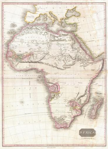 | Keywords: 1818 Pinkerton Map of Africa - Geographicus - Africa-pinkerton-1818.jpg This is John Pinkerton's stunning 1818 map of Africa Nineteenth century mapmakers were particularly challenged by the difficult task of deciphering Africa Despite a fairly constant flow of information about the continent dating to the middle ages much of the interior remained speculative at best Pinkerton straying from the path of his 18th century predecessors chooses to leave much of the interior blank and instead focuses known areas or more precisely areas perceived to be known These include Mediterranean North Africa Egypt Abyssinia the western Niger valley the Congo South Africa and the lands of Monomotapa Zimbabwe Each of these regions have their own unique history of European contact Egypt along the Nile had been well mapped even in Antiquity The same is true of Christian Abysinnia who through regular contact with the Coptic mother church in Egypt was well known if mostly unexplored by Europeans The tale of European incursion and occupation of South Africa could easily encompass volumes and explains Pinkerton's sophisticated mapping of this area The Niger Valley and the Congo had been simultaneously exploited and explored by Portugal and later Belgium since the 1300s Monomotapa opposite the island of Madagascar was a major stopping point on the Portuguese trade routes to India Curiously this region has also been associated with King Solomon's Mines and Biblical legends of the Land of Ophir Pinkerton doesn't specifically mention the Kingdom of Monomotapa or Mutapa which by this time had long fallen into decline but he does he does identify several of its constituent states including Manica Sabia and Sofala as well as the Rich Gold Mines supposedly found there In truth this area was rich in gold in the 1300s but by the time the Europeans arrived most of the mines had been tapped out The remaining parts of the map are frequently quite vague Pinkerton does note several important and recognizable African tribal groups including the Bushman of the Kalahari Booshmanas the Hottentots the Massai and others North of the Monomotapa region we can find Lake Maravi a long narrow lake oriented on a north-south axis This lake with its northern extremis speculatively ghosted most likely represents Lake Malawi or Lake Tanganyika or both Curiously just to the east of Maravi Pinkerton maps an interesting apocryphal mountain range which he call the Backbone of the World This range has variously been associated with the Mountains of the Moon described by the 5th century Alexandrian geographer Claudius Ptolemy and another independent range described by Arab cartographers Regardless the Backbone of the World at least as it applies to this part of Africa never existed Further north though Pinkerton does map the Mountains of the Moon which were said by Ptolemy to lie near two great lakes that were at the source of the White Nile Today some regard this range and its lakes as speculative but more likely it represents Ptolemy's very real knowledge of Lake Victoria and the Rwenzori Mountains In any case Pinkerton makes the curious decision not to map the Ptolemaic Lakes though does maintain the Mountains of the Moon placing the source of the Nile there To the west of the Mountains of the Moon Pinkerton draws a long mountain range called the Kong Mountains This speculative was proposed by the explorations of Mungo Parks and were presumed to be the southern barrier to the Niger River valley All in all this is a spectacular map that stands up to hours of close examination - a fascinating addition to any Africa collection Drawn by L Herbert and engraved by Samuel Neele under the direction of John Pinkerton This map was issued in the scarce American edition of Pinkerton ™s Modern Atlas published by Thomas Dobson Co of Philadelphia in 1818 1818 undated Size in 20 5 28 object history credit line accession number Africa-pinkerton-1818 Pinkerton J <i>A Modern Atlas from the Lates and Best Authorities Exhibiting the Various Divisions of the World with its chief Empires Kingdoms and States; in Sixty Maps carefully reduced from the Larges and Most Authentic Sources </i> 1818 Philadelphia Thomas Dobson Edition Geographicus-source PD-old-100 Maps by John Pinkerton Old maps of Africa 1818 maps |
