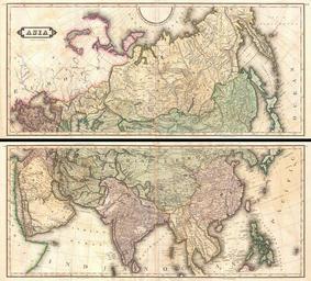 | Keywords: 1820 Lizars Wall Map of Asia (in two panels) - Geographicus - Asia-lizars-1820.jpg An extremely appealing large format c 1820 map of Asia rendered in two panels Truly one of the most beautiful large format maps of Asia to appear in an early 19th century atlas Drawn by Daniel Lizars this map covers from the Mediterranean to the Sea of Kamchatka top panel and from the Red Sea to Japan bottom panel The map further extends north as far as the Arctic and south as far as Ceylon and Borneo Stylistically this map follows the conventions established by Thomson Pinkerton and Cary at the turn of the 18th century especially with regard to coloration border design typography and topographic schemes Cartographically while ostensibly similar to earlier 19th century mappings of Asia Lizars does incorporate a number of advances most of which are derived from Russian surveys in Siberia and Central Asia as well as nautical expeditions to the Russian Arctic most specifically around New Siberia and the Liakhov islands In India evidence of British cartographic work of the late 18th century particularly that of Rennell is apparent Persia Arabia and the Near East clearly benefit from Ottoman mapping efforts The remainder of the map reveals just how extremely scarce information about Asia was even in the early 19th century Along the coasts of Japan and Korea Lizars references Janson ™s 17th century maps Lizars ™ Central Asia is based on even earlier cartographic information dating to Marco Polo and the Mongol Empire Even the old capital of the Khans Karakorum is noted China is correctly divided into China Proper and the greater Chinese sphere of influence here called the Chinese Empire stretching from the Kashgar to Korea inclusive of Tibet Southeast Asia is weakly mapped though does represent the regions before significant colonization efforts by the British in Burma and the French in Vietnam and Cambodia Furthermore this map was clearly drawn during a period of Burmese ascendance with the Birman Empire embracing all of modern day Burma and Thailand Drawn and published by Daniel Lizars possibly for his c 1820 Edinburgh Geographical and Historical Atlas 1820 undated Size in 35 5 32 object history credit line accession number Asia-lizars-1820 Lizars D <i>The Edinburgh geographical and historical atlas comprehending a sketch of the history of geography and history of each continent state and kingdom delineated And a tabular view of the principal mountain chains in the World Engraved on sixty-nine copperplates and compiled from materials drawn from the newest and most authentic sources</i> Edinburgh c 1820 Geographicus-source PD-Art-100 Old maps of Asia 1820 maps Daniel Lizars Old maps of the Sea of Japan Maps in English |