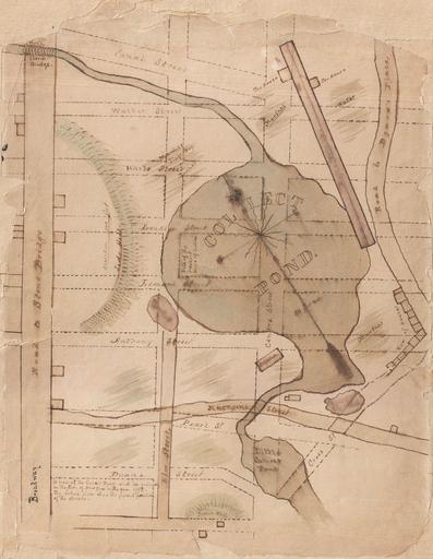 | Keywords: 1840 Manuscript Map of the Collect Pond and Five Points, New York City - Geographicus - CollectPond-fivepoints-1793.jpg This is a one of a kind early 19th century manuscript map of the New York City's Collect Pond or Five Points region Cover's parts of southern Manhattan between Broadway and Cross Street including Leonard Street Anthony Street Elm Street Pearl Street Duane Street Center Street Canal Street Walker Street Franklin Street and White Street Shows marshes tanneries the rope walks the tar house water sources hills and housing While we are uncertain who originally drew this map we can make some conjectures regarding its date and origins The map ostensibly depicts the Collect Pond area in 1793 about five years before Fitch tested one of the first steamboats on the Pond and about twenty years before the Collect was finally filled in A note in the lower right corner notes that modern streets have been ghosted in with dotted lines The street configuration and the presence of the Halls of Justice also known as the Tombs lets us date this between 1835 and 1850 This would have been at the heights of the Five Points slum period described by Martin Scorsese's in the 2002 film Gangs of New York The Five Points slum which appeared in the 1830s after the Collect Pond was filled in for health reasons was one of history's most desperate slums In the late 19h century after over 80 years of infamy the Five Points were leveled and redeveloped much as it is today We can only speculate on why this map was drawn and who drew it Stylistically it bears some resemblance to school girl maps which were common in the period though the subject matter would have been unlikely in this context It also bears some similarity to surveyor's manuscripts in regard to the detail in which it is laid out but the lack of measurements belies the possibility that it may be one We have found a few printed maps of the Collect Pond and Five Points which are similar most notably a map that accompanied a broadside asserting the claims of Fitch over Fulton as the inventor of the steamboat but none that correspond exactly If this map were in fact a prototype for later printed maps we have not been able to identify an exact map which may have been descended from it Even so this is a rare and unique piece and a valuable part of the Five Point history circa 1840 dated 1793 _ Size in 10 5 13 5 object history credit line accession number CollectPond-fivepoints-1793 Geographicus-source PD-art Old maps of Manhattan New York City 1840 maps 1793 in New York City Five Points Manhattan Collect Pond Manuscript maps |