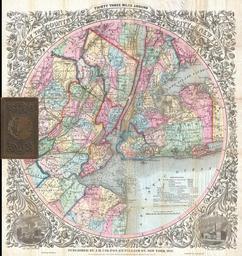 | Keywords: 1846 Colton Map of New York City and Vicinity (33 Miles Around) - Geographicus - NewYork33MilesAround-colton-1855.jpg This is the extremely rare 1855 edition of one of the most beautiful pocket maps of New York made in the 19th century Colton ™s Thirty Three Miles Around the City of New York Covers New York City and vicinity as far south as Ocean County New Jersey as far east as Suffolk County as far north as Rockland County and as far west as Somerset County Reveals the area in considerable detail with special attention to settlements tolls roads and railroads New York Bay and Harbor offers numerous depth soundings taken from the 1850 U S Coast Survey chart of the region Surrounded by a splendid decorative border with engraved views depicting City Hall New York and City Hall Brooklyn This map was drawn and engraved by J M Atwood based upon J H Eddy ™s 1811 map of the same name Colton ™s success with this attractive map was such that it was issued in various editions for over 50 years Haskell notes eight different editions between 1846 and 1873 and Rumsey has a variant dated 1891 Comes with original brown linen binder with a miniature map of the city in gilt stamped on the cover Dated 1855 to right of the imprint below map proper Below this at the base of the map the copyright reads Entered according to the Act of Congress in the Year of 1846 by J H Colton Co in the Clerk ™s Office of the District Court of the Southern District of New York Published by the Colton firm prior to their 1859 bankruptcy from their 172 William Str Office in New York City 1855 dated Size in 22 5 24 object history credit line accession number NewYork33MilesAround-colton-1855 Geographicus-source PD-old-100 Old maps of New York City 1855 1855 maps New York City Maps by Joseph Hutchins Colton Round maps Maps in English New York City Hall Brooklyn Borough Hall |