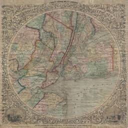 Keywords: 1848 Colton Map of New York City and Vicinity (33 Miles Around) - Geographicus - NewYork33Miles-colton-1848.jpg This is the extremely rare 1848 edition of one of the most beautiful pocket maps of New York made in the 19th century Colton ™s Thirty Three Miles Around the City of New York Covers New York City and vicinity as far south as Ocean County New Jersey as far east as Suffolk County as far north as Rockland County and as far west as Somerset County Reveals the area in considerable detail with special attention to settlements tolls roads and railroads New York Bay and Harbor offers numerous depth soundings taken from the 1850 U S Coast Survey chart of the region Surrounded by a splendid decorative border with engraved views depicting City Hall New York and City Hall Brooklyn This map was drawn and engraved by J M Atwood based upon J H Eddy ™s 1811 map of a similar name Colton ™s success with this attractive map was such that it was issued in various editions for over 50 years Haskell notes eight different editions between 1846 and 1873 and Rumsey has a variant dated 1891 Dated 1848 at the base of the map below map proper Below this at the base of the map the copyright reads Entered according to the Act of Congress in the Year of 1846 by J H Colton Co in the Clerk ™s Office of the District Court of the Southern District of New York Published by the Colton firm prior to their 1859 bankruptcy from their 172 William Str Office in New York City 1848 dated Size in 23 23 object history credit line accession number NewYork33Miles-colton-1848 Geographicus-source PD-old-100 Old maps of New York City 1848 maps Maps by Joseph Hutchins Colton Round maps Maps in English