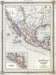 | Keywords: 1852 Duvotenay Map of Mexico ( includes Texas and Upper California ) - Geographicus - Mexique-duvotenay-1852.jpg An uncommon and extremely attractive 1852 map of the Mexico by Th Duvotenay Includes all of modern day Mexico as well as Texas and the territories Upper California claimed by Mexico prior to the 1849 Treaty of Guadaloupe-Hildago Shows the Mexico “ U S Boundary line prior to the Gadsden Purchase Offers a number of fascinating elements including pre-Fremont cartography in Upper California The fictional rivers Jesus Maria and Wimmetchke are shown extending eastward from San Francisco Bay Labels the Great Salt Lake as Lake Teguayo after José Antonio de Alzate y RamÃrez Lake Teguayo is said by some to be the legendary homeland of the Aztecs To the north of Lake Teguayo today ™s Lake Utah is labeled Lake Timpanogos Texas appears at its fullest extent Mexico itself is divided into its various intendancies An inset in the lower left quadrant focuses on Guatemala Features a beautiful frame style border Prepared by Th Duvotenay for publication as plate no 31 in Maison Basset ™s 1852 edition of the Atlas Illustre 1852 undated Size in 9 12 5 object history credit line accession number Mexique-duvotenay-1852 Maison Basset <i>Atlas Illustre</i> 1852 issue Geographicus-source PD-art Old maps of Mexico Thunot Duvotenay Old maps of Central America 1852 maps Maps in French |