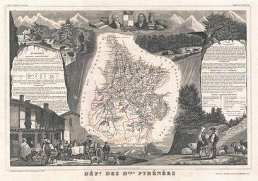 | Keywords: 1852 Levasseur Map of the Department Des Hautes Pyrenees, France - Geographicus - HautesPyrenees-levasseur-1852.jpg This is a fascinating 1852 map of the French department of Hautes Pyrenees France This area is home to the wine producing region Madiran Madrian is best known for producing a powerful red wine made from the Tannat grape This area also makes a number of cheeses including Tomme Noire des Pyrenees and Roquefort cheese The map proper is surrounded by elaborate decorative engravings designed to illustrate both the natural beauty and trade richness of the land There is a short textual history of the regions depicted on both the left and right sides of the map Published by V Levasseur in the 1852 edition of his Atlas National de la France Illustree 1852 undated Size in 16 5 11 5 object history credit line accession number HautesPyrenees-levasseur-1852 Levassuer V <i>Atlas National Illustre des 86 Departements et des Possessions de La France Divise par Arrondissements Cantons et Communea avec La Trace de Toutes Les Routes Chemins de fer et Canaux </i> 1852 edition Geographicus-source PD-old-100 Cheese in Hautes-Pyrénées 1852 maps France Old maps of Hautes-Pyrénées Maps in French France Symbols of Tarbes coat of arms Bertrand Barère de Vieuzac Dominique Larrey Victor Levasseur - Maps of France France |