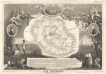 | Keywords: 1852 Levasseur Map of the Reunion or the Ile. Bourbon, Indian Ocean - Geographicus - IleBourbon-levasseur-1852.jpg This is a fascinating 1857 map of the French department of Ile Bourbon or Reunion Bourbon or Reunion is a volcanic island off the coast of Africa It is one of France's few remaining colonies in the Indian Ocean Reunion is known for its striking natural beauty and marvelous beaches The whole is surrounded by elaborate decorative engravings designed to illustrate both the natural beauty and trade richness of the land There is a short textual history of the regions depicted on both the left and right sides of the map Published by V Levasseur in the 1852 edition of his Atlas National de la France Illustree 1852 undated Size in 17 12 object history credit line accession number IleBourbon-levasseur-1852 Levassuer V <i>Atlas National Illustre des 86 Departements et des Possessions de La France Divise par Arrondissements Cantons et Communea avec La Trace de Toutes Les Routes Chemins de fer et Canaux </i> 1852 edition Geographicus-source PD-old-100 Victor Levasseur - Maps of the world France 1852 maps France Old maps of Réunion |