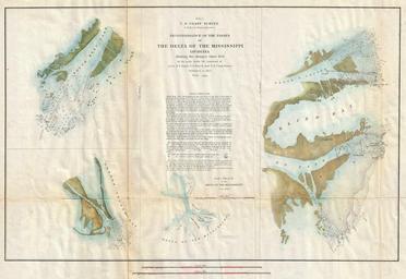 | Keywords: 1852 U.S. Coast Survey Map of the Mississippi River Delta - Geographicus - MississippiDelta-uscs-1852.jpg An attractive hand colored 1852 U S Coast Survey triangulation chart or map of the Mississippi Delta This map is in fact a composite of four different maps detailing different parts of the Delta The first map in the upper left quadrant details the Southwest Pass entrance to the Mississippi Map number two in the lower left quadrant details South Pass and Garden Island Bay Map number three bottom center details the Delta as a whole Map number four occupying the entire right hand section of the map shows Passe a Loutre Blind Pay and North East Pass Shows the locations of light houses shoals Drift Trees Stakes and offers innumerable depth soundings The center of the map is occupied by a large text area offering detailed sailing instructions Prepared by a party under the command of Lieutenant B F Sands Compiled under the direction of A D Bache Superintendent of the Survey of the Coast of the United States and one of the most influential American cartographers of the 19th century 1852 dated Size in 20 5 14 object history credit line accession number MississippiDelta-uscs-1852 <i>Report of the Superintendant of the U S Coast Survey </i> 1852 edition Geographicus-source PD-art United States Coast Survey maps Maps of Plaquemines Parish Louisiana 1852 U S Coast survey 1852 maps 1852 in Louisiana Old maps of Louisiana |
