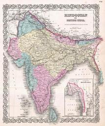 | Keywords: 1855 Colton Map of India - Geographicus - India-colton-1855.jpg A beautiful 1855 first edition example of Colton's map of India Covers the subcontinent from Tibet to Ceylon Sri Lanka Color coded according to region and divided into Bombay Scinde Punjab Nepal Bhutan the Bengal Presidency Madras and Ceylon An inset map in the lower right quadrant shows British claims in Burma Pegu and Southeast Asia Throughout Colton identifies various cities towns rivers and assortment of additional topographical details Surrounded by Colton's typical spiral motif border Dated and copyrighted to J H Colton 1855 Published from Colton's 172 William Street Office in New York City Issued as page no 30 in volume 2 of the first edition of George Washington Colton's 1855 Atlas of the World 1855 dated Size in 13 5 16 5 object history credit line accession number India-colton-1855 Colton G W <i>Colton's Atlas of the World Illustrating Physical and Political Geography</i> Vol 2 New York 1855 First Edition Geographicus-source PD-old-100 Maps by Joseph Hutchins Colton Old maps of the Indian Subcontinent 1855 maps of India |