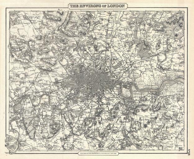 | Keywords: 1855 Colton Map of London, England - Geographicus - London-cbl-1855.jpg An excellent example of Colton ™s c 1855 map of London and environs Includes parts of Surrey Kent Middlesex and Essex Extends north to Southgate east to Chadwell Heath south to Kingston Mitcham and Bromley and west to Harrow and Isleworth - on a scale of 5/8 of an inch to the mile The whole is beautifully detailed to the level of individual buildings trees canals and roads Includes topographical details as well as farms parks riverways and swamps This is most likely the one of the first maps of London to appear in an American atlas Copyrighted 1855 but most likely this was published for a post 1857 issued of Colton ™s Atlas Map no 69 in the single volume the c 1857 edition of Colton's Atlas of The World Published from Colton ™s 172 William Str Office in New York 1855 dated Size in 15 12 5 object history credit line accession number London-cbl-1855 <i>Colton's Atlas Of The World Illustrating Physical And Political Geography By George W Colton </i> 1857 or later edition Geographicus-source PD-old-100 Maps by Joseph Hutchins Colton Old maps of London 1855 maps |