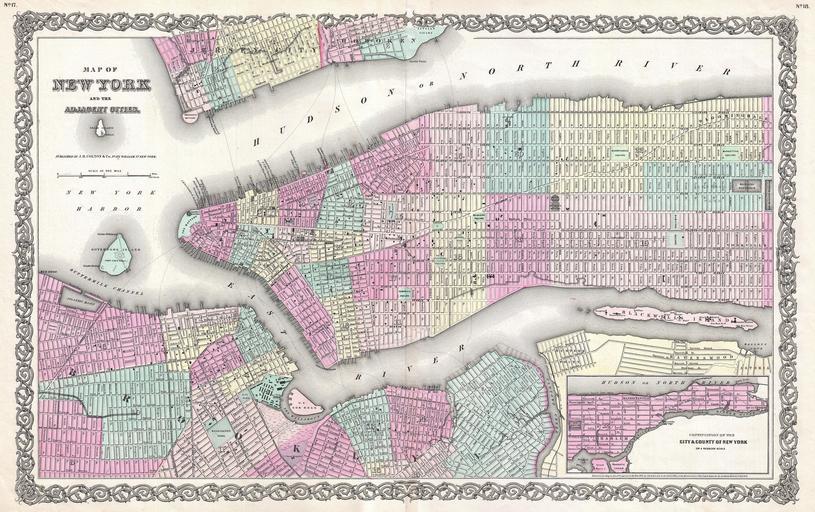 | Keywords: 1855 Colton Map of New York City, Manhattan, Brooklyn, Hoboken (first edition) - Geographicus - NewYorkCity-colton-1855.jpg A rare and beautiful example of J H Colton's map of New York City and vicinity including Manhattan as well as parts of Brooklyn Jersey City Hoboken and Queens This is the first edition first state of the Colton New York City atlas map in which Olmstead ™s Central Park is completely absent This important map would become the template from which Johnson and late later S A Mitchell Jr would build their own New York City maps Beautiful hand color according to city ward Wonderful attention to detail includes individual streets and even important buildings and parks Originally prepared as plates no 17 and 18 in J H Colton ™s 1856 single volume issue of the Atlas of the World ¦ Dated and copyrighted Entered according to the Act of Congress in the Year of 1855 by J H Colton Co in the Clerk ™s Office of the District Court of the United States for the Southern District of New York Published from Colton ™s 172 William Str Office in New York 1855 dated Size in 26 5 16 5 object history credit line accession number NewYorkCity-colton-1855 Colton G W <i>Colton's Atlas Of The World Illustrating Physical And Political Geography </i> 1856 single volume edition Geographicus-source PD-old-100 Maps by Joseph Hutchins Colton Old maps of New York City 1855 maps |