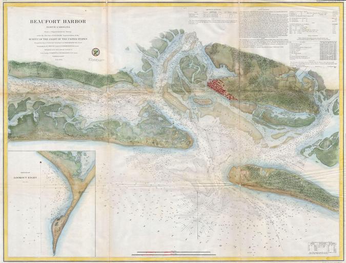 Keywords: 1857 U.S.C.S. Map of Beaufort Harbor, North Carolina - Geographicus - BeaufortHarbor-uscs-1857.jpg This is a rare and unusual 1857 U S C S Map of Beaufort Harbor North Carolina Depicts the North Carolina coast from Carolina City westward through Beaufort as far as Lenoxville Point Features superb inland detail of the region as well as innumerable depth soundings indications of various shoals and breakers and detailed sailing instructions An inset map in the lower left quadrant shows Lookout Blight or Cape Lookout This map was prepared under the direction of A D Bache for the 1857 edition of the Annual Report of the Coast Survey The triangulation was accomplished by C P Bolles and A S Wadsworth The Topography is the work of H L Whiting and A S Wadsworth The hydrography was assembled by avarious parties under the Command of Lieutenant Commander J N Maffitt and C R P Rodgers 1857 dated Size in 30 22 5 object history credit line accession number BeaufortHarbor-uscs-1857 Geographicus-source PD-art United States Coast Survey maps Old maps of North Carolina 1857 maps Beaufort North Carolina |