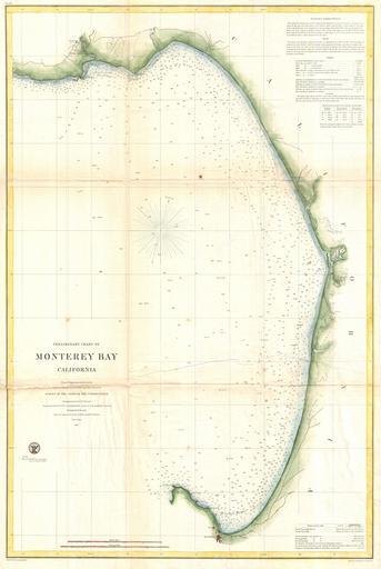 Keywords: 1857 U.S. Coast Survey Map of Monterey Bay, California - Geographicus - MonterayBay-usca-1857.jpg This is an uncommon 1857 U S Coast Survey Chart or Map of Monterey Bay California Covers from the town and mission of Santa Cruz south to Monterey City and Point Pinos Countless depth soundings throughout Notes on tides under sea dangers and sailing instructions in the upper right quadrant The Triangulation for this survey was completed by R D Cutts The topography is the work of R D Cutts A M Harrison and W M Johnson The Hydrography was accomplished by a party under the command of James Alden The construction of this chart was supervised by A D Bache one of the most important and influential early superintendents of the U S Coast Survey Published in the 1857 edition of the Superintendent ™s Report 1857 dated Size in 21 31 object history credit line accession number MonterayBay-usca-1857 <i>Report of the Superintendant of the U S Coast Survey </i> 1857 edition Geographicus-source PD-art United States Coast Survey maps 1857 maps Old maps of California Monterey Bay |