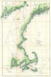 | Keywords: 1859 U.S. Coast Survey Map of the New England Coa - Geographicus - CapeCodtoMaine-uscs-1859.jpg An impressive and striking example of the U S Coast Survey ™s 1859 map or triangulation chart of the New England coastline Covers the coast line from Narraganset Bay Rhode Island eastwards past Martha ™s Vineyard and Nantucket then north to Cape Cod Boston Harbor Cape Anne Portsmith New Hampshire and Portland Maine Includes Boston City and Harbor Salem Provincetown Cape Ann Gloucester Newburyport Portsmouth and Portland among other towns A large inset map in the upper left quadrant focuses on Penobscot Bay This chart was prepared under the supervision of A D Bache one of the most influential and prolific Superintendents of the Coast Survey Issued in the 1859 Superintendent ™s Report 1859 dated Size in 24 36 object history credit line accession number CapeCodtoMaine-uscs-1859 <i>Report of the Superintendent of the United States Coast Survey </i> Washington 1859 Geographicus-source PD-art United States Coast Survey maps 1859 maps Old maps of Massachusetts Massachusetts Coast Triangulation |