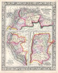 | Keywords: 1864 Mitchell Map of Peru, Equador (Ecuador), Argentina, Columbia and Venezuela - Geographicus - SouthAmericaNorth-mitchell-1864.jpg A beautiful example of S A Mitchell Jr ™s 1864 three map sheet depicting parts of South America The first map shows New Granada Columbia Venezuela and Guiana The second map in the lower left quadrant depicts Peru and Equador Ecuador The third map in the lower right quadrant features the Argentine Confederation One of the most attractive American atlas maps of this region to appear in the mid 19th century Features the floral border typical of Mitchell maps from the 1860-65 period Prepared by S A Mitchell for inclusion as plate no 55 in the 1864 issue of Mitchell ™s New General Atlas Dated and copyrighted Entered according to Act of Congress in the Year 1860 by S Augustus Mitchell in the Clerk ™s Office of the District Court of the U S for the Eastern District of Pennsylvania 1860 dated Size in 10 75 13 5 object history credit line accession number SouthAmericaNorth-mitchell-1864 <i>Mitchell's New General Atlas containing Maps of the Various Countries of the World Plans of Cities Etc Embraced in Fifty-three Quarto Maps forming a series of Eighty-Four Map and Plans together with Valuable Statistical Tables </i> 1864 Edition Geographicus-source PD-old-100 Maps by Samuel Augustus Mitchell Old maps of the Republic of New Granada Old maps of the Granadine Confederation Old maps of Peru Old maps of Argentina Old maps of Ecuador Old maps of French Guiana Old maps of Guyana Old maps of Panama Old maps of Suriname Old maps of the history of Venezuela 1860 maps |