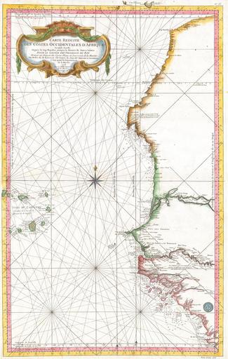 | Keywords: 1865 Bellin Sea Chart of Western Africa ( Senegal, Gambia, Guinea, etc.) - Geographicus - WestAfrica2-bellin-1765.jpg This large nautical chart of Western African was produced by the French Cartographer Jacques-Nicolas Bellin Depicts Western Africa from The Canary Islands South through Western Sahara Senegal Guinea-Bissau the Gambia Guinea and Sierra Leone This is primarily a costal chart with depth soundings and navigational marks but does show the river courses and considerable interior details in the Cape Verde Islands The remainder of the interior remains largely unmapped There is a large decorative title cartouche in the upper left as well as a Depot del la Marine stamp in the lower right All in all an extraordinary sea chart of Africa ™s northwest coast 1865 Size in 35 22 object history credit line accession number WestAfrica2-bellin-1765 Geographicus-source PD-old-100 Maps by Jacques-Nicolas Bellin Old maps of Africa Old maps of the Atlantic Ocean 1865 maps |
