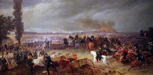 | Keywords: 1868 Bleibtreu Schlacht bei Koeniggraetz anagoria.JPG Georg Bleibtreu 1828 “1892 attributed to de Der preußische König Wilhelm I Bismarck und General Moltke beobachten die größte Umfassungsschlacht der Kriegsgeschichte Am 3 Juli 1866 standen sich etwa 180 000 Österreicher und 200 000 Preußen gegenüber 1 500 Geschütze kamen zum Einsatz Mit dem Sieg der preußischen Armee eröffnete sich der Weg für eine Reichseinigung unter preußischer Führung “ ohne Österreich en The Prussian King Wilhelm I Bismarck and Moltke General observe the largest encirclement in military history On July 3 1866 approximately 180 000 Austrians faced 200 000 Prussians 1 500 guns were used With the victory of the Prussian army the way for a unification opened under Prussian leadership - without Austria 1869 oil canvas cm 100 200 institution Deutsches Historisches Museum accession number Gm 94/26 http //www dhm de/datenbank/dhm php seite 5 fld_0 K1000785 Deutsches Historisches Museum Berlin object history credit line exhibition history photo own Anagoria 2012-11-11 1892 DEFAULTSORT Bleibtreu Georg; Die Schlacht von Königgrätz am 3 Juli 1866; Deutsches Historisches Museum Battle of Königgrätz by Georg Bleibtreu Paintings in the Deutsches Historisches Museum Deutsches Historisches Museum - 19th century 1869 paintings Files by User anagoria |
