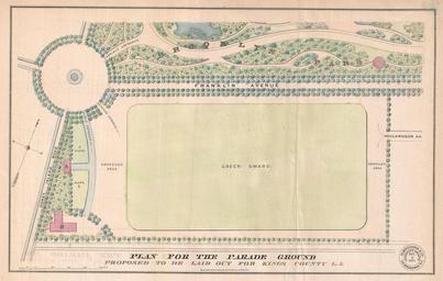 | Keywords: 1868 Vaux and Olmstead's Map of the Prospect Park Parade Grounds, Brooklyn, New York - Geographicus - ParadeGround-bishop-1868.jpg An extremely scarce example of Vaux and Olmstead ™s map of the King County Parade Ground today known as the Prospect Park Parade Ground or the Prospect Park Base Ball Grounds The Parade Ground is bounded by Parade Place Franklin Avenue now Parkside Avenue Caton Avenue and Coney Island Avenue The Ground was designed by Olmsted and Vaux in conjunction with the adjacent Prospect Park The Parade Ground saw its first parade in 1867 when the 11th Brigade's Howitzer Battery strutted their stuff Although intended from the start as a military facility sports moved in early and by 1871 the Parade Ground was being described by Henry Chadwick as the finest free ball ground in the United States This map was published in the 1868 edition of William Bishop ™s Manual of the Common Council of the City of Brooklyn 1867 dated Size in 12 8 object history credit line accession number ParadeGround-bishop-1868 Bishop William <i>Manual of the Common Council of the City of Brooklyn 1864</i> 1864 Geographicus-source PD-art Old maps of Brooklyn New York City 1868 maps Brooklyn |