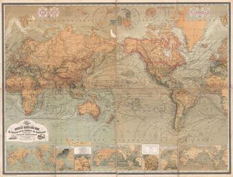 | Keywords: 1870 Baur and Bromme Map of the World on Mercator Projection - Geographicus - NeuesteKartederErde-baur-1870.jpg Artwork en A vastly complex and enormously proportioned c 1870 German map of the world by C F Baur and Traugott Bromme Printed in c 1870 in a multi-toned lithographic process this extraordinary map presents the world on a Mercator Projections Designed with a educational purposes in mind Baur manages to incorporate a staggering wealth of informative detail into ever corner of this map The world is depicted according to the political conventions of the late 19th century While most of the world had been explored by the late 19th century this map does offer some interesting speculative land masses in the Arctic including Gillis Land named after a c 1707 whaler who supposedly spotted it and a mysterious land mass to the northwest of the Behring Strait The Canadian Arctic is remarkable well mapped though the whole region is shows to be locked down in glacial ice In contrast Antarctic exploration was still in its infancy though parts of the Antarctic coast line are noted to the south of Australia and off the coast of Tierra del Fuego Throughout there is an attempt to map currents and wind patterns Various explorers routes including Cook Biscoe Tasman Wilkes Vancouver the Resolution Wallis Boupet Diego Alvarez Bligh Boulton and many others This also identifies the Saragasso Sea and another similar vortex in the Pacific The border regions of the map are occupied by a series of smaller maps and charts including polar projections an isothermal chart a winds chart an inset of Panama and Suez two weather charts and a magnetic variation chart The title cartouche appearing in the lower left quadrant shows a shop and a train as well as curious logo that seems to embraced the realms of navigation and science 1870 undated Size in 49 36 object history credit line accession number NeuesteKartederErde-baur-1870 Geographicus-source PD-art 1870 maps 1870s maps of the world Old maps with Mercator projection Maps in German Old weather and climate maps Global maps centered 180E Paris prime |