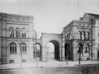 | Keywords: 1870ca F-A-Schwartz Eisenbahnbedarf.jpg de Eingangsportal und -gebäude der Aktiengesellschaft für Fabrication von Eisenbahnbedarf an der Chausseestraße 11 in Berlin Die Bauten wurden 1858/59 nach Entwürfen von C Ende und H Böckmann errichtet Aufnahme von F Albert Schwartz um 1870 Berlin wird Weltstadt/Photographien von F Albert Schwartz F Albert Schwartz 1836-1906 PD-old Friedrich Albert Schwartz Chausseestraße Berlin-Mitte Factories in Berlin-Mitte | ||||