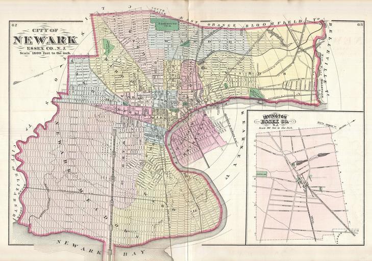 Keywords: 1872 Beers Map of Newark, New Jersey - Geographicus - Newark-beers-1872.jpg A fine example of the 1872 map of Newark New Jersey by F W Beers Covers the center of Newark from Elizabeth to Belleville and from Bloomfield to Newark Bay and the Passaic River Shows streets city wards canals parks railways and important buildings Includes the Proposed New York and Newark Bay Ship Canal which though the darling of several New Jersey politicians of the period never materialized Concentric circles marking mileage radiate out from the center of the city at the intersection of Market and Broad Streets Also includes adjacent East Newark An inset map in the lower right quadrant details Irvington Essex Co Published form original survey ™s by F W Beers in his 1872 Atlas of New Jersey 1872 undated Size in 22 15 15 object history credit line accession number Newark-beers-1872 Beers F W <i>State atlas of New Jersey based on State Geological Survey and from additional surveys by and under the direction of F W Beers</i> 1872 Geographicus-source PD-art Maps by Frederick William Beers 1872 maps Old maps of New Jersey History of Newark New Jersey Maps of cities in New Jersey Maps of Essex County New Jersey Old maps of cities in the United States |