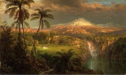 | Keywords: 1872, Church, Frederic Edwin, Passing Shower in the Tropics.jpg en Frederic Edwin Church American 1826 “1900 Passing Shower in the Tropics 1872 Oil on canvas 31 x 51 cm 12 3/16 x 20 1/16 in frame 41 8 × 62 5 × 3 1 cm 16 7/16 × 24 5/8 × 1 1/4 in Museum purchase y1945-212 Frederic Church was the primary pupil of the Hudson River School ™s founder Thomas Cole who imparted to his technically gifted student the notion of landscape painting as a vehicle for conveying ideas about history divinity and the human condition These concepts were complemented by the writings of naturalist Alexander von Humboldt whose Cosmos inspired Church to visit South America in search of sublime subject matter with which to express his pantheistic apprehension of the natural world Church produced a series of spectacular paintings of tropical scenes that combine panoramic scope with precise accurate detail proposing and offering revelation through scientific knowledge Passing Shower in the Tropics a modestly scaled iteration of these South American subjects shares with other later examples of the type a focus on atmospheric effects and the apparent representation of an amalgam of locations rather than a single particular site 1872 Princeton University Art Museum Frederic Edwin Church other versions PD-Art American art in the Princeton University Art Museum American paintings in the Princeton University Art Museum Paintings in the Princeton University Art Museum Modern art in the Princeton University Art Museum Frederic Edwin Church Oil paintings of landscapes Paintings of palms 1870s landscape paintings 1872 paintings |