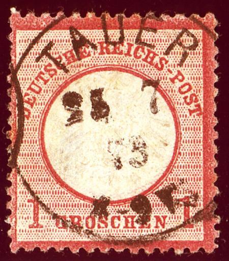 | Keywords: 1873 Reich 1Gr Tauer Brandenburg Mi19.jpg en Stamp of Germany 1 groschen carmine issue June 1872 large shield cancelled at TAUER Brandenburg on 25-7-1873 Michel N°19 2014-06-21 17 35 38 own Jacquesverlaeken Scan of cancelled stamp > 100 years old PD-Germany-§134-KUG PD-1923 self cc-zero 1872 stamps of the German Empire Tauer Postmarks of Brandenburg Carmine stamps |