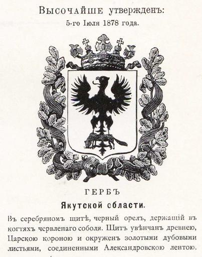| Keywords: Якутская обл 1878 из Винклера.jpg Official Russian Empire coats of arms Yakutsk Oblast Ге б Российской Импе ии Якутской области с официальным описанием в Ге бовнике Винкле а П П фон-Винкле Ге бы го одов губе ний областей и посадов Российской Импе ии внесенные в Полное Соб ание законов с 1649 по 1900 год Дозволено цензу ою С -Пете бу г 20 Июля 1899 года Издание книгото говца Ив Ив Иванова С -Пете бу г Типог афия И Комелова П яжка д 3 1899 \ Scanned by Vizu 1878 / 1899 published П П фон Винкле \ Pavel von Vinkler PD-old PD-RusEmpire PD-RU-exempt <gallery> File Якутская область из Бенке jpg File Якутская область ВД Бенке jpg File Якутская область изд Сукачова JPG File Coat of Arms of Yakutsk oblast Russian empire png </gallery> <references/> Gerbovnik Vinklera - Governorate Oblast CoAs Yakutsk Oblast |