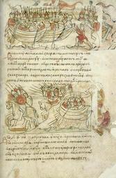 | Keywords: Радзивиловская летопись лист187.jpg ru Радзивиловская летопись лист 187 Русско-византийская война 1043 года Вышату же схватили вместе с выб ошенными на бе ег и п ивели в Ца ьг ад и ослепили много усских Спустя т и года когда установился ми отпущен был Вышата на Русь к Я ославу В те в емена выдал Я ослав сест у свою за Казими а и отдал Казими вместо свадебного да а восемьсот усских пленных захваченных еще Болеславом когда тот победил Я ослава В год 6552 1044 Выкопали из могил двух князей Я ополка и Олега сыновей Святослава и ок естили кости их и положили их в це кви святой Бого одицы В тот же год уме Б ячислав сын Изяслава внук Владими а отец Всеслава и Всеслав сын его сел на столе его 2011-10-10 21 44 21 http //radzivilovskaya-letopis ru//index php id 187 sel - other versions PD-Art Uploaded with UploadWizard Radzivill Chronicle |