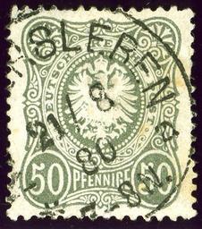 | Keywords: 1880 Reich 50Pfennige Mi38a.jpg en Stamp of Germany 50 Pfennige grey-olive issue 1877 Cancelled on 21-8-1880 Michel N°38a 2014-06-21 17 35 38 own Jacquesverlaeken Scan of a cancelled stamp > 100 years old PD-Germany-§134-KUG PD-1923 self cc-zero 1877 stamps of the German Empire Olive stamps |