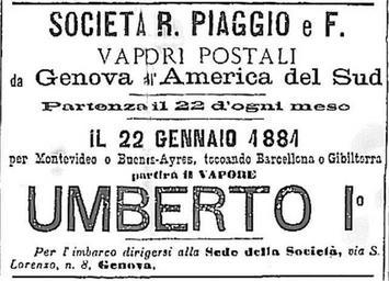 | Keywords: 1881-01-03-Vapori-Postali-Piaggio.jpg it Inserzione pubblicitaria del 3 1 1881 su la Gazzetta provinciale di Bergamo Italia - Vapori postali da Genova all'America del Sud - partenza il 22 gennaio 1881 della Umberto I Gazzetta provinciale di Bergamo 3 1 1881 Società R Piaggio e F 3 1 1881 The Ships List http //www theshipslist com/ships/lines/srpf htm Società Rocco Piaggio and Figli Genoa 1870-1885 on 10 December 1878 by the 2 822 ton UMBERTO I PD-old Advertisements in Italy Shipping line advertisements 1881 advertisements in Italy Umberto I ship 1878 |