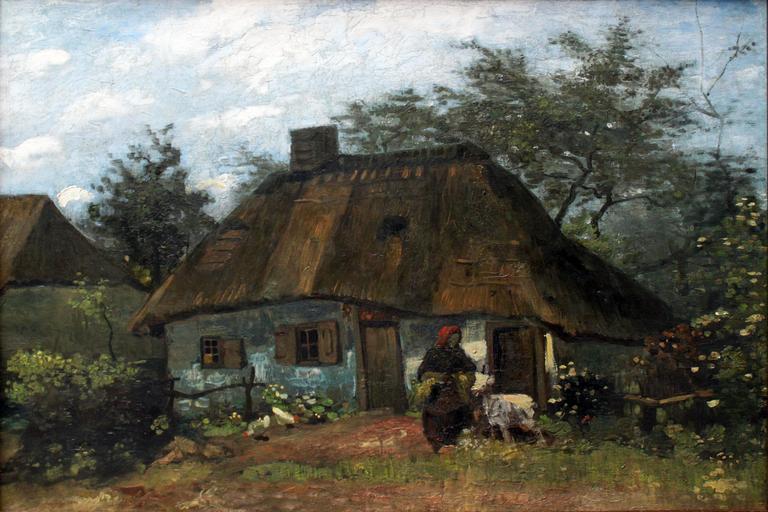 MAKE A MEME View Large Image Gogh Bauernhaus in Nuenen anagoria.JPG Artwork Creator Vincent van Gogh title Bauernhaus in Nuenen La Chaumiére Cottage and Woman with Goat / Farmhouse in Nuenen La Chaumiére Nuenen 1885 06 - 1885 07 oil canvas cm 60 85 Städel 1436 Van ...