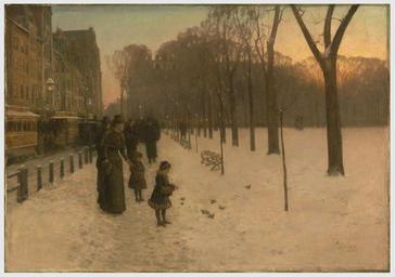 | Keywords: 1886 BostonCommonAtTwilight byChildeHassam.png Boston Common at Twilight by Childe Hassam 1885-1886 Oil on canvas 106 68 x 152 4 cm 42 x 60 in Museum of Fine Arts Boston Museum of Fine Arts Boston http //www mfa org/collections 1885-1886 creator Childe Hassam Boston Common in the 19th century Boston in the 1880s Winter in Boston PD-old-auto 1935 |