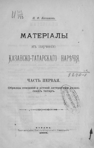 | Keywords: татарский катанов 1898 перевод ргб russian state library russianstatelibrary rsl tatar russian empire russianempire blackandwhite monochrome text writing document black and white Катанов, Николай Федорович (1862-1922). Материалы к изучению казанско-татарского наречия : Ч. 1-2 / [Публ., пер. и вступ. ст.] Н.Ф. Катанов. - Казань : типо-лит. Имп. ун-та. - 2 т.; 24. Русский перевод образцов книжной и устной литературы казанских татар. - 1898. - [2], 114, II с. Хранение: G 49/248; Хранение: U 312/143; Электронный ресурс dlib.rsl.ru/rsl01003000000/rsl01003950000/rsl01003950608/... Катанов, Николай Федорович (1862-1922). Материалы к изучению казанско-татарского наречия : Ч. 1-2 / [Публ., пер. и вступ. ст.] Н.Ф. Катанов. - Казань : типо-лит. Имп. ун-та. - 2 т.; 24. Русский перевод образцов книжной и устной литературы казанских татар. - 1898. - [2], 114, II с. Хранение: G 49/248; Хранение: U 312/143; Электронный ресурс dlib.rsl.ru/rsl01003000000/rsl01003950000/rsl01003950608/... |