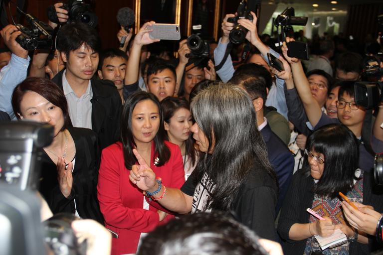 | Keywords: 香港本土議員宣誓風波上演政治對決大戲 18.jpg zh-tw 香港立法 10 26日上演驚人政治大戲(美 之音海彥拍 ) 親中建制派上 三製 立法 流 阻止 年新政梁頌恆和遊蕙禎再次宣誓,並政治施壓 迫立法 主席梁君彥改變自己先前裁定,宣布押後兩人宣誓後,10 26日的立法 大 成為外界 注的焦點 同聲譴責梁君彥讓政治凌駕法律的 建制派議員, 三上午組成人鏈,成功護 梁頌恆和遊蕙禎 入議事大廳要求宣誓,但 終梁君彥以無法恢復 議廳秩序為由宣布休 ,再次阻止兩人宣誓 2016-10-26 12 08 17 http //www voachinese com/a/localist-legislators-fail-to-swear-20161026/3566630 html 海彥 other versions Custom license marker 2016 11 06 PD-USGov-VOA Hong Kong LegCo members' oath-taking controversy | ||||